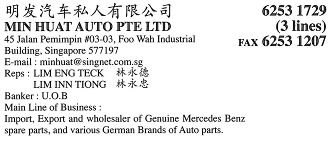 9 Jurong Town Hall Road #04-17 Trade Association Hub Jurong Town Hall Singapore 609431 Tel: 65-6339 7648 Fax:65-6336 6181